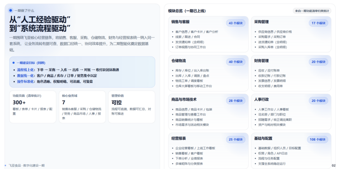 系统逐步从“业务记录工具”升级为 飞亚食品的经营决策支持平台。