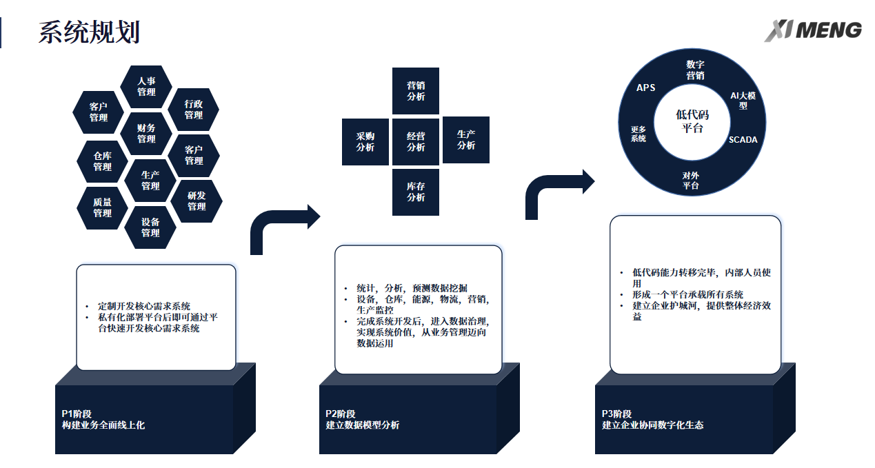 熙梦的破解逻辑与别人与众不同,我们往往不会选择去“重造系统”,而是多方面结合熙梦自身数字化咨询+织信低代码平台的独特优势,围绕电子行业的核心痛点先设计出一套“可落地、可感知”的数字化解决方案,此方案的核心是让系统“跟着企业流程走”,而不是让企业去“跟着系统走”。