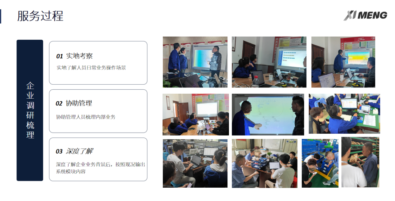 熙梦的服务流程一直以”可落地”为核心指标,因此我们会提供专业的数字化服务团队为企业进行“可落地、防踩坑”的全流程服务:
