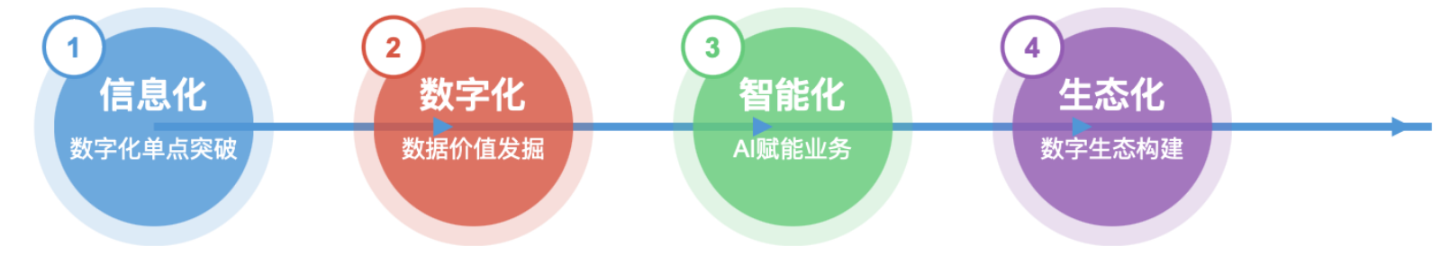 数字化转型是一条持续进化的道路,大致可以划分为四个阶段: