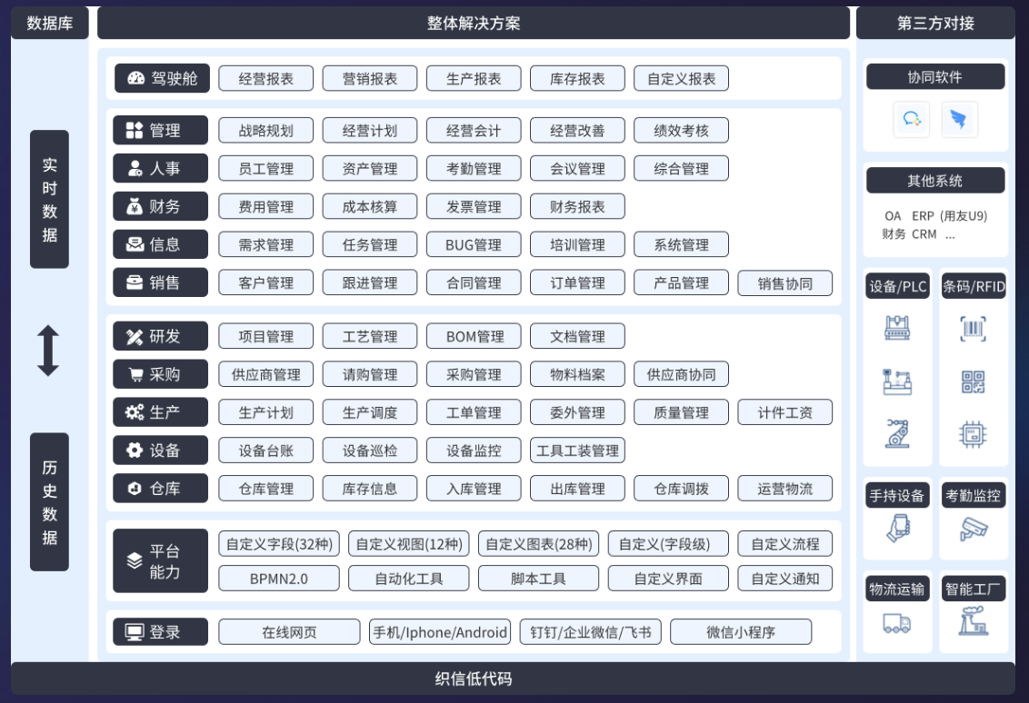 对于处于信息化阶段的企业: 首要任务是“打好地基”。重点在于业务流程的标准化和核心系统的云端部署,实现数据的初步采集和打通。此时,选择扩展性强、易于后续集成的SaaS产品至关重要。
