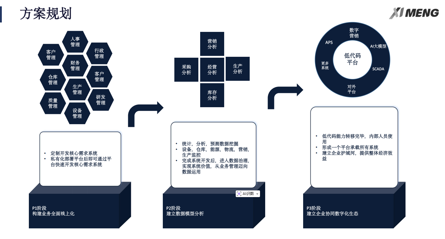 打破数据孤岛:建立企业级数据中台,整合研发、生产、供应链、营销等各部门数据,同时接入外部数据(如市场趋势、竞品动态、天气数据),形成统一的数据资产池。