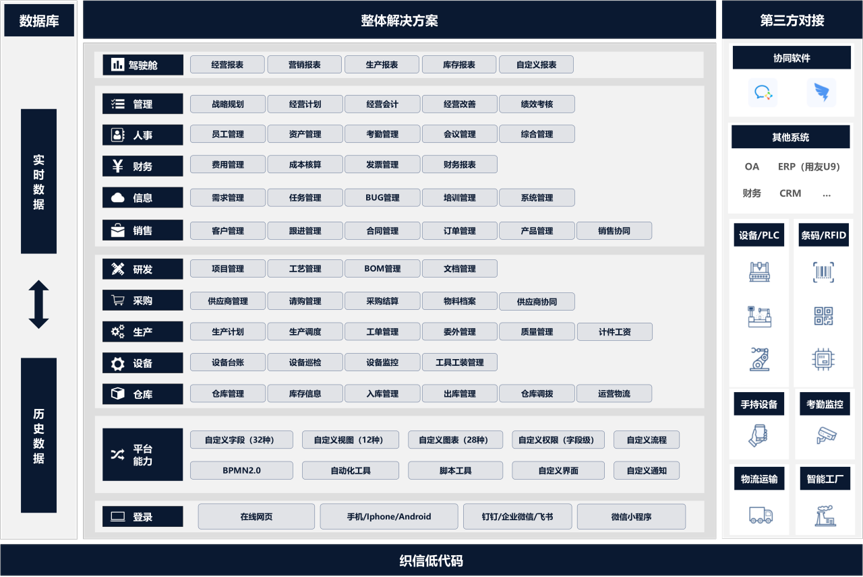 基于熙梦低代码平台,快速部署MES、WMS、SRM等子系统,通过低代码组件化配置完成核心功能适配,并完成与ERP的深度联动调试,大幅提升部署效率: