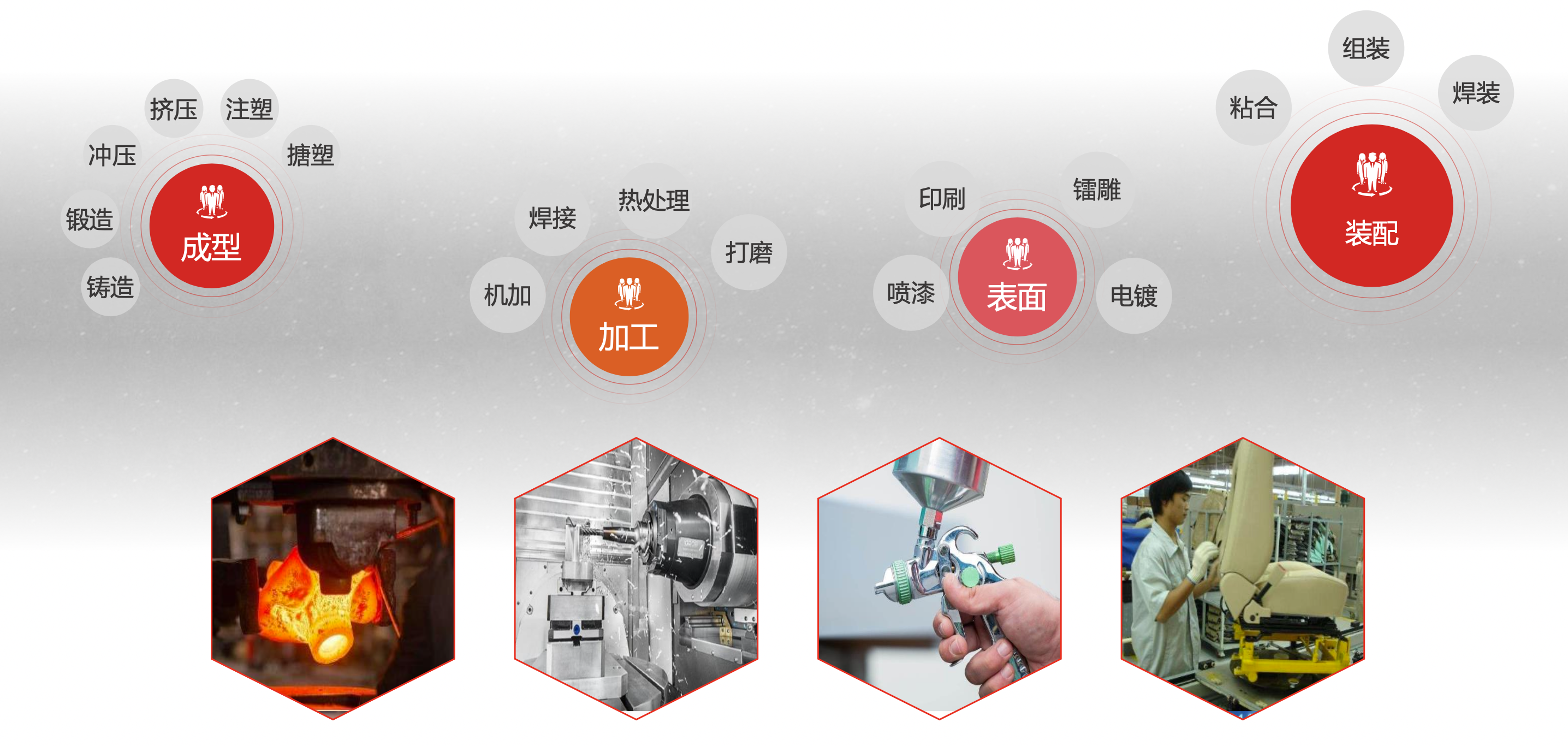 1. 热处理:有淬火(提高硬度)、回火(降低脆性)、渗碳(齿轮表面强化)等工艺。用于发动机零件、传动系统部件。
